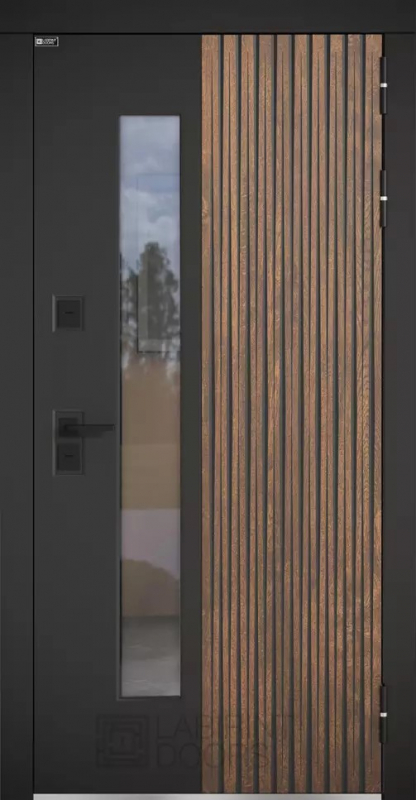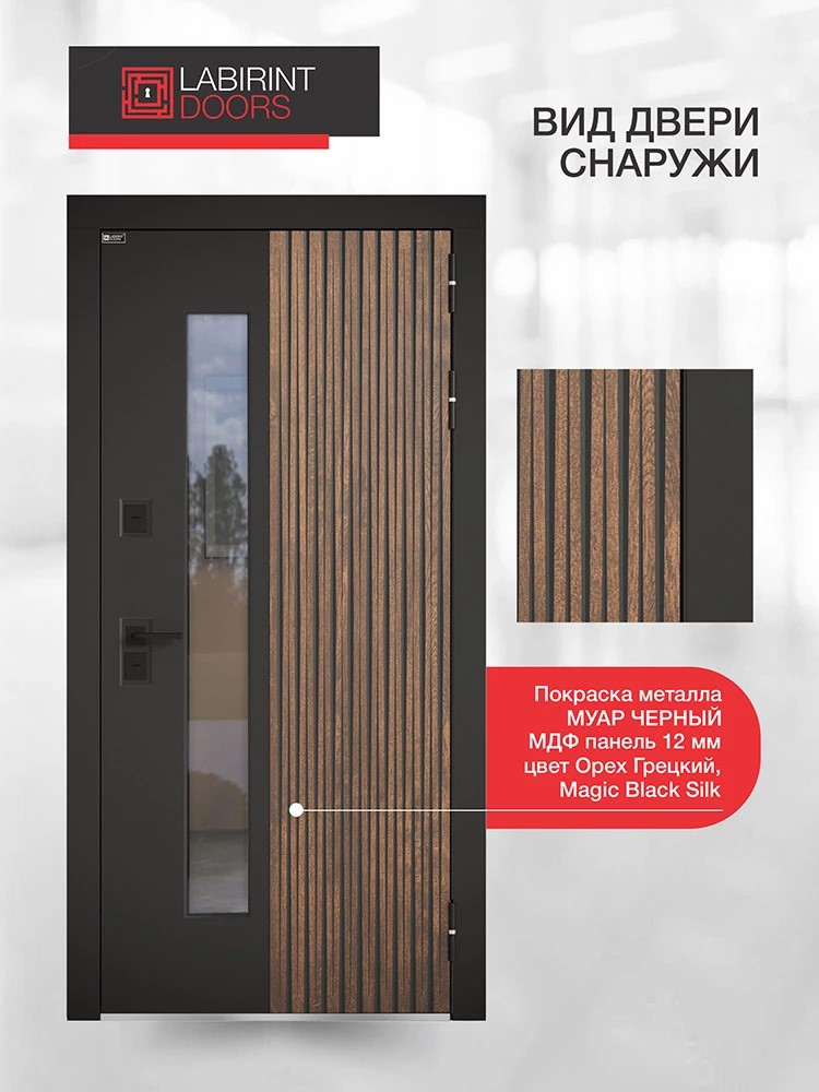 - Отделка снаружи Влагостойкая MDF панель 12 мм комбинированная в цвете "Magic Black silk" и "Орех грецкий" с патиной