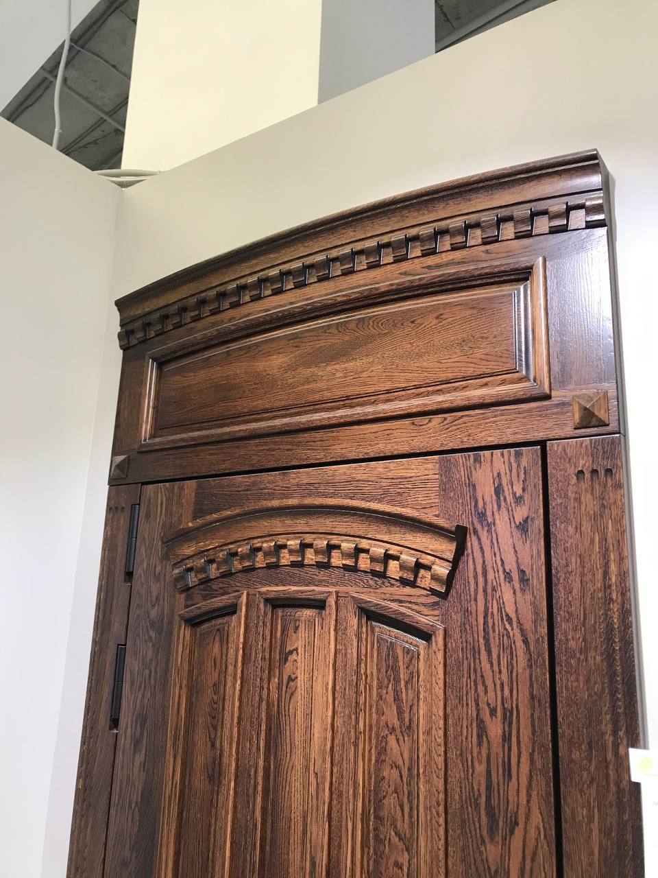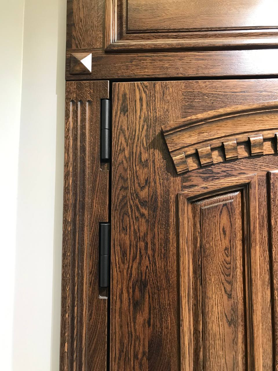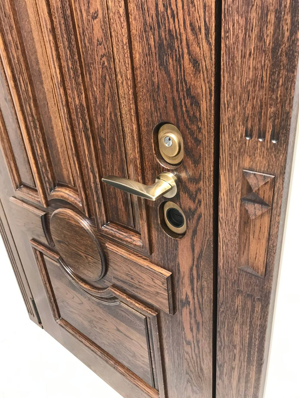Внешняя отделка: объемная панель Массив дуба (22 мм) + патинирование;